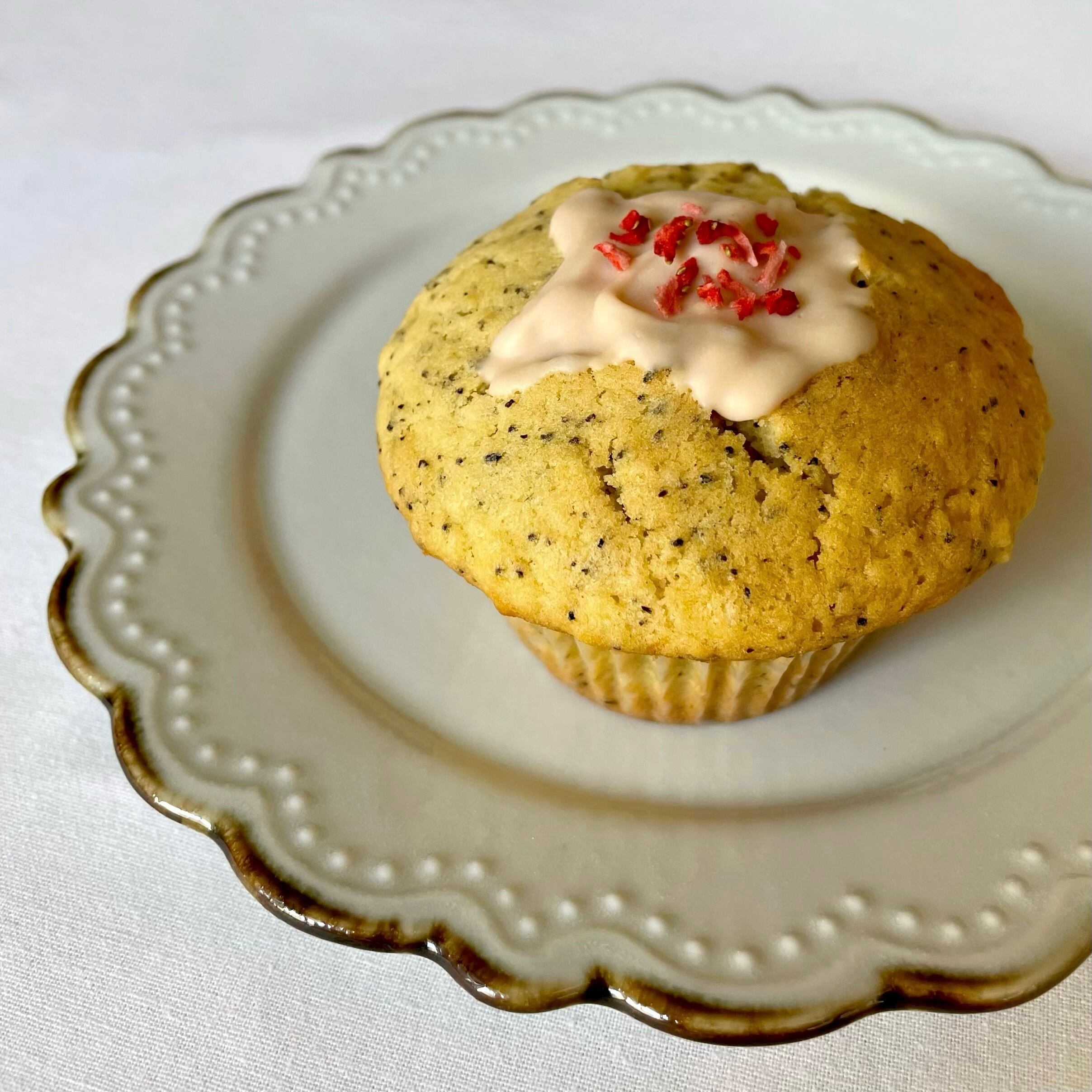 アールグレイ茶葉が香る生地で、いちごを包み込みました。トッピングはいちご風味のチョコレート ˎˊ˗
