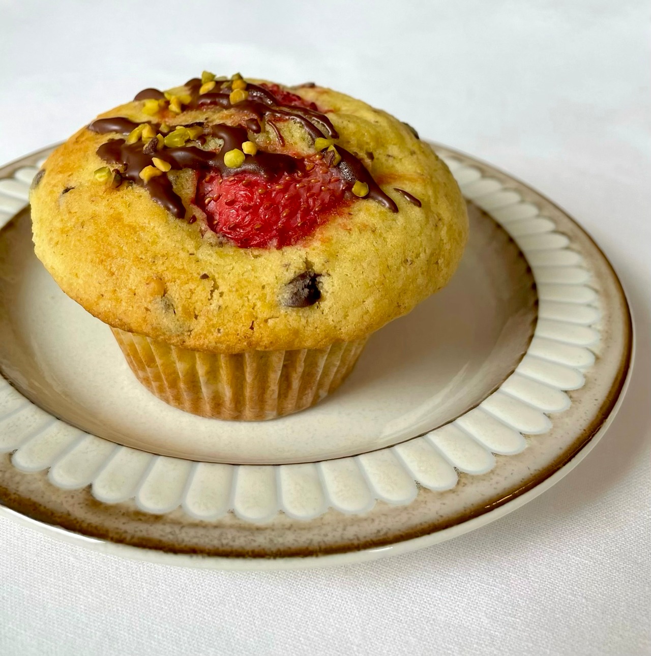 濃厚なピスタチオ味の生地に、チョコチップ入り!甘酸っぱいいちごがアクセント。